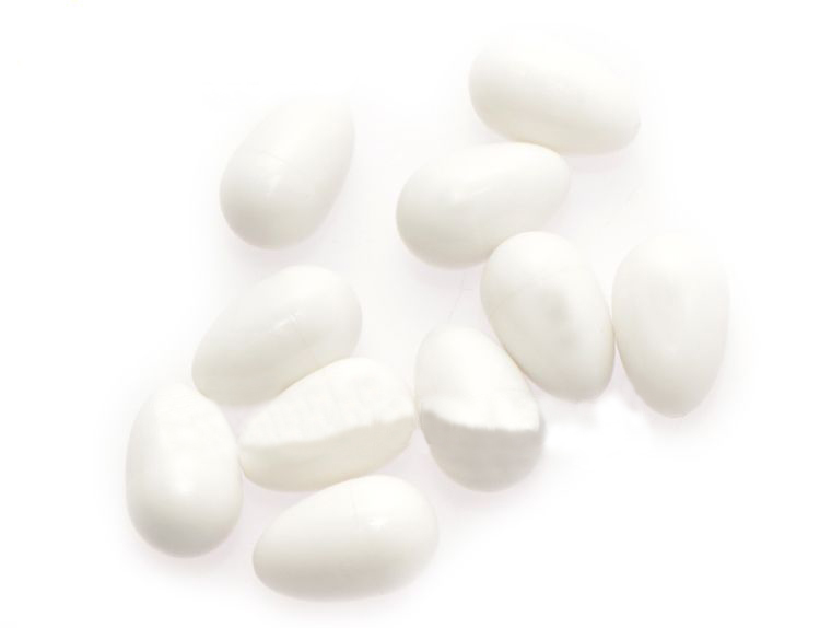 Praktyczne jajeczka do podkładania w gniazdkach lęgowych dla papug. Jajeczka do podkładania dla papużek falistych wykonane zostały z trwałego tworzywa sztucznego w białym kolorze. Jajeczka dla papużek mają wymiar 25 x 17 mm. Wyglądem sztuczne jajka doskonale imitują te naturalne, dlatego po ich wymianie w gnieździe samica nie jest w stanie ich odróżnić. Dodatkową zaletą jest to, że oferowane sztuczne jajka papug są już wypełnione w środku.