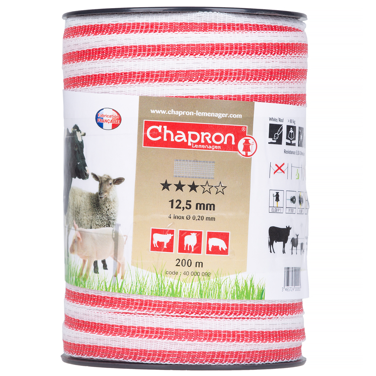 Taśma biało-czerwona do elektrycznego pastucha RUBAN 12,5mm/200m