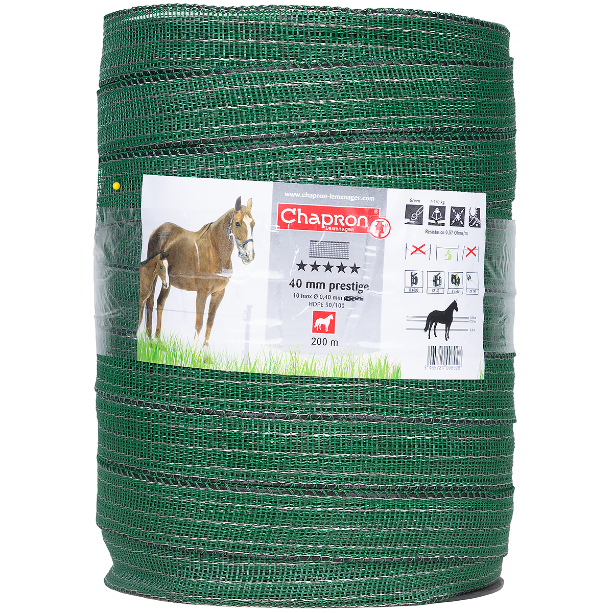 Taśma RUBAN PRESTIGE zielona 40mm 200m do ogrodzeń dla koni - 200 metrów