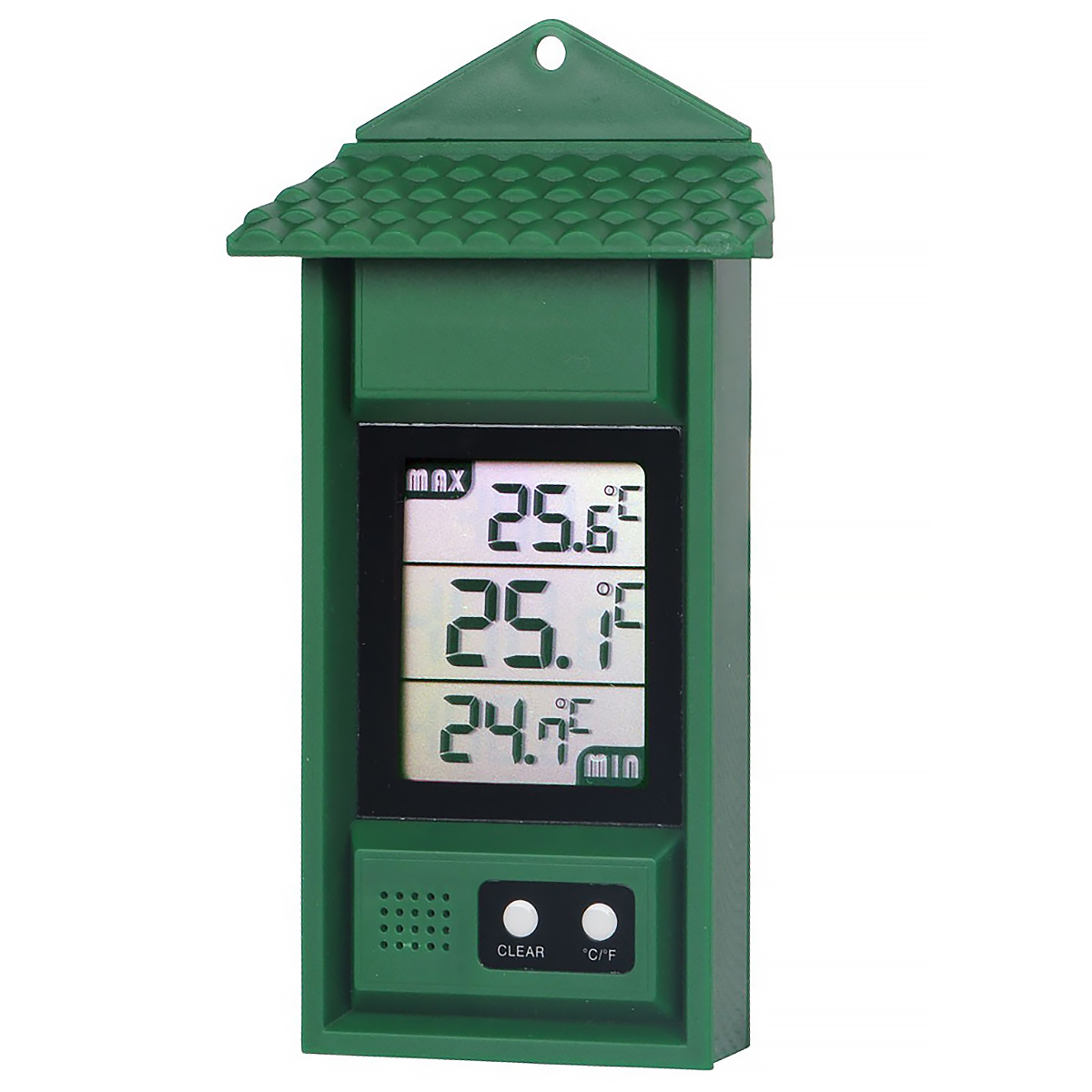 Termometr Minima-Maxima z wyświetlaczem do pomiaru wahań temperatury. Urządzenie przeznaczone jest zarówno do użytku wewnętrznego, jak i zewnętrznego.