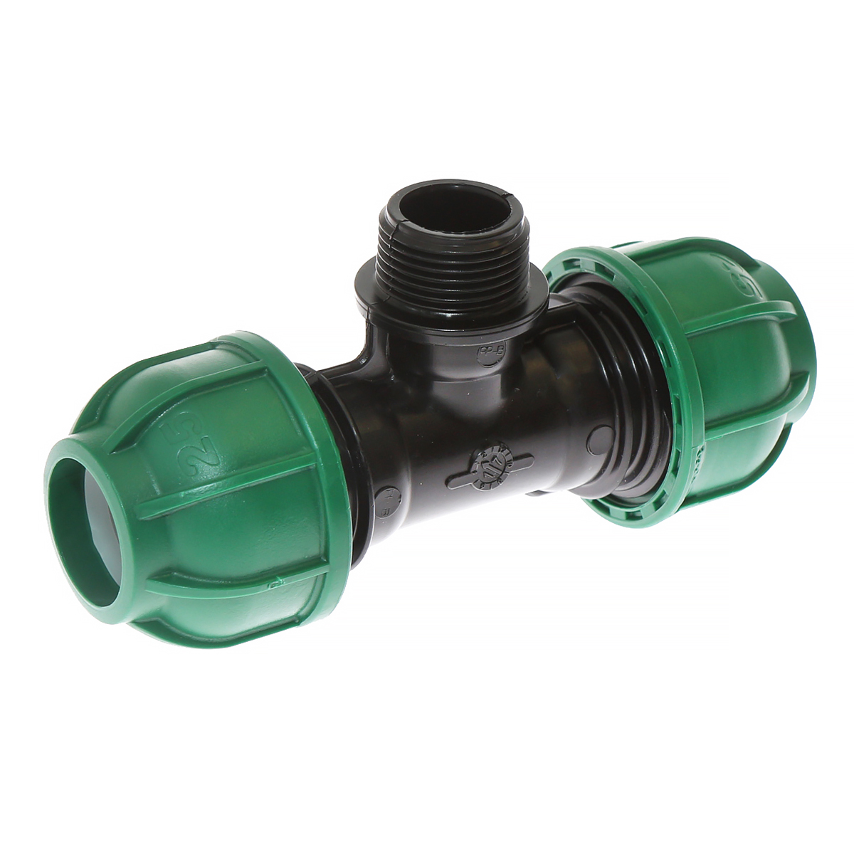Trójnik do łączenie rur PE fi 25 mm wykorzystywany przy budowie linii pojenia. Złączka posiada jedno wyjście z gwintem zewnętrznym 3/4", które pozwala na podłączenie dowolnego elementu systemu pojenia. Mocowanie rur odbywa się poprzez dokręcenie zielonych nakrętek, wewnątrz których znajdują się pierścienie mocujące i uszczelki. Taka konstrukcja łącznika gwarantuje 100 % szczelność połączenia.