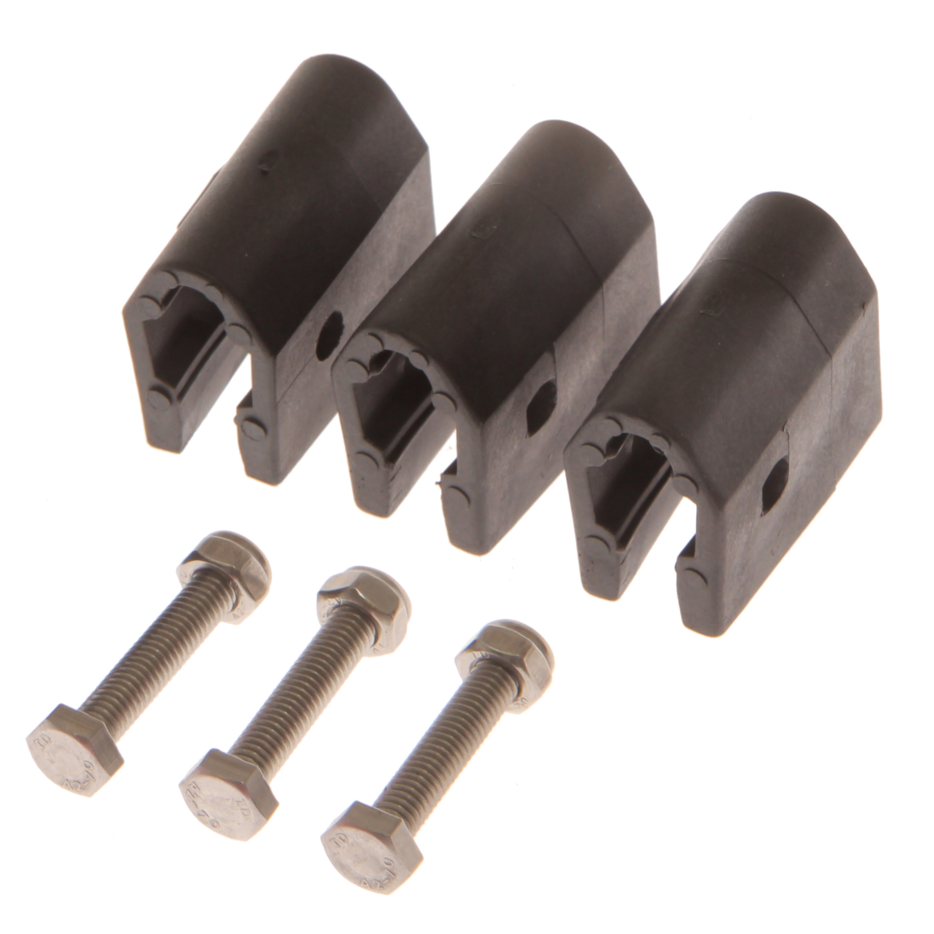 Zestaw 3 szt uchwytów montażowych ze śrubami do wentylatorów Multifan. Wykorzystanie gniazd montażowych pozwala na stabilne mocowanie wentylatorów w kominie.