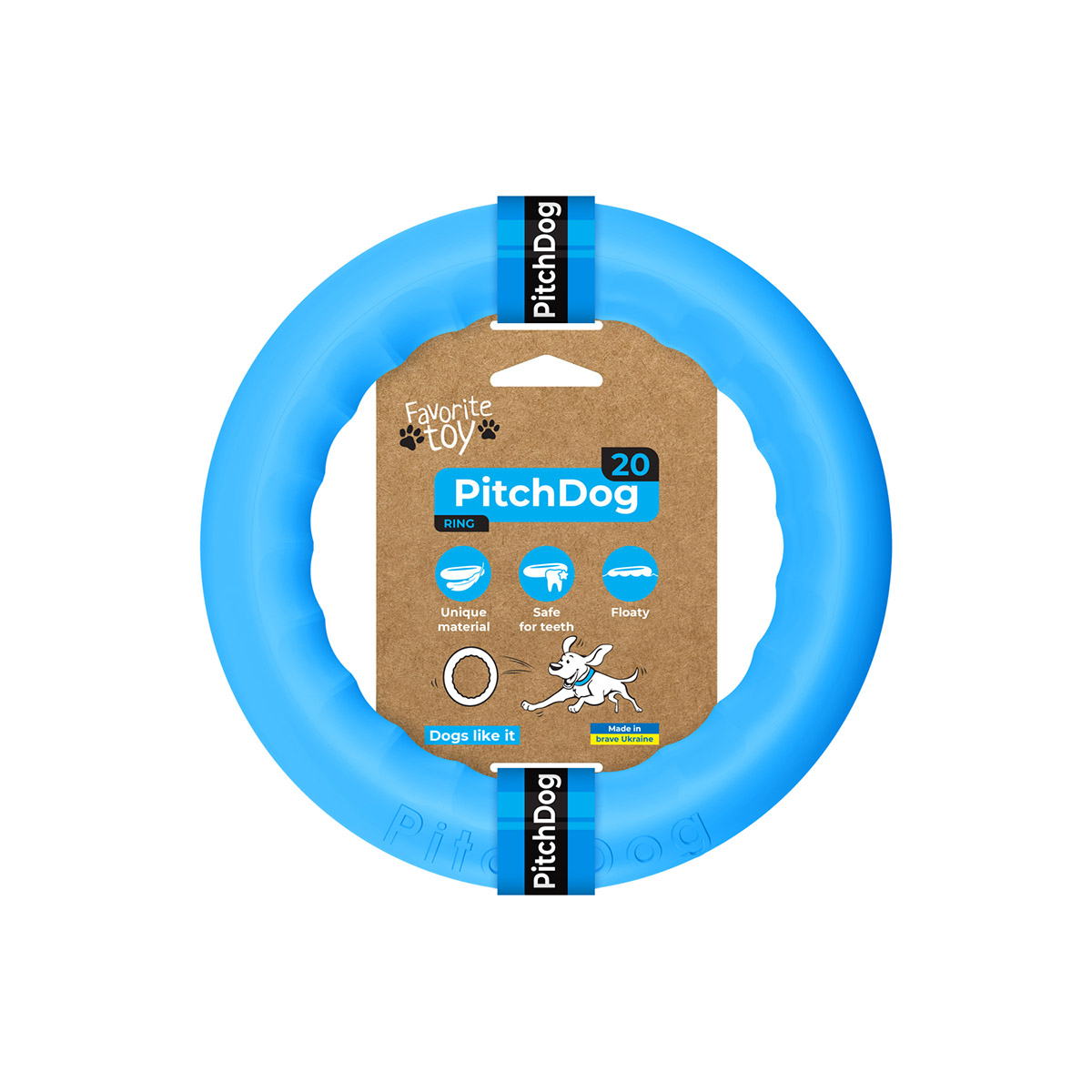Pierścieniowa zabawka dla psa PitchDog o średnicy 20 cm w kolorze niebieskim do nauki aportowania.