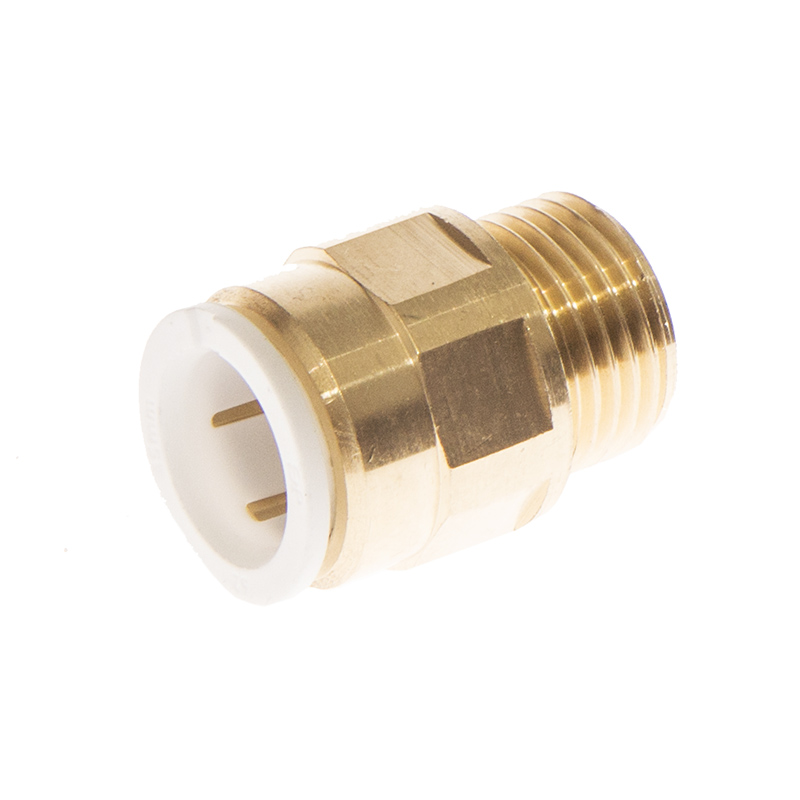 Mosiężna złączka dedykowana do węży spiralnych zasilających reduktory ciśnienia linii kropelkowych. Dzięki solidnemu gwintowaniu w łatwy sposób można połączyć węże ciśnieniowe z reduktorami wykorzystywane w systemach pojenia zwierząt.