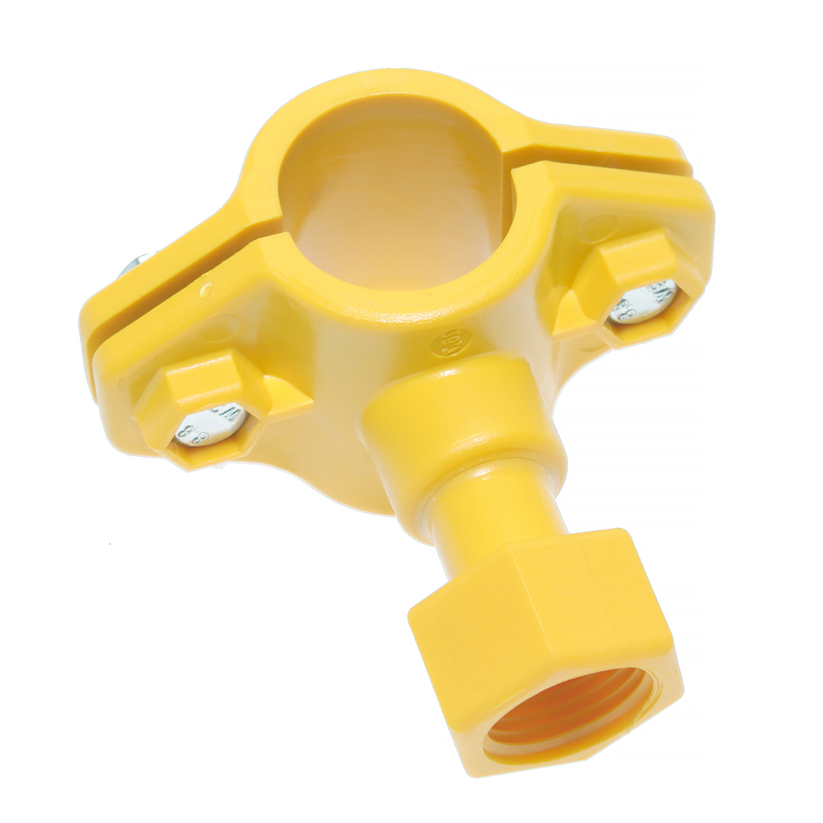 Jest to najprostszy i najszybszy sposób na przeprowadzenie wody z rur stalowych ocynkowanych o średnicy 25mm do linii pojenia dla drobiu. Wystarczy nawiercić otwór w rurze o szerokości 1cm i zamontować w tym miejscu złączkę, tak aby wystający trzpień wszedł w przygotowany otwór. Następnie należy skręcić ze sobą obejmy złącza do rur okrągłych, tak aby uszczelka dobrze przylegały do rur i nie dochodziło do przecieków czy nieszczelności.