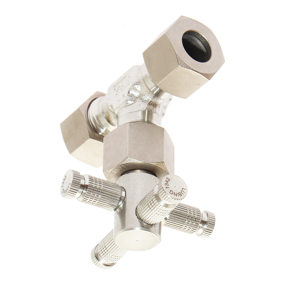 Zraszacz z czterema gwintami wykonany został z wysokiej jakości stali nierdzewnej, co znacznie wydłuża żywotność całego systemu. Aby skutecznie zabezpieczyć linie zamgławiania przed zapychaniem dysz należy stosować odpowiednie filtry wodne, który montuje się jest na początku całego systemu.